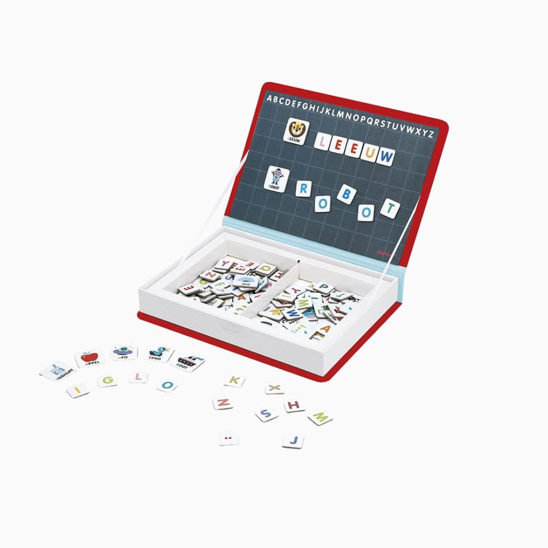 Met het magneetboek ‘alfabet’ van Janod maakt je kind keer op keer een nieuw woord. Het boek leert je kind op een leuke manier het Nederlandse alfabet aan. Met behulp van de illustraties kunnen de kleinsten een woord leren samenstellen door het model op de magneten te volgen.