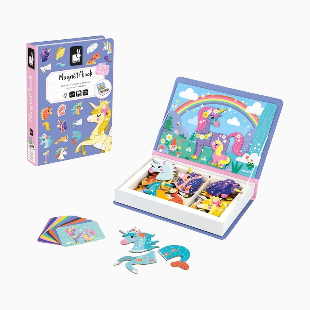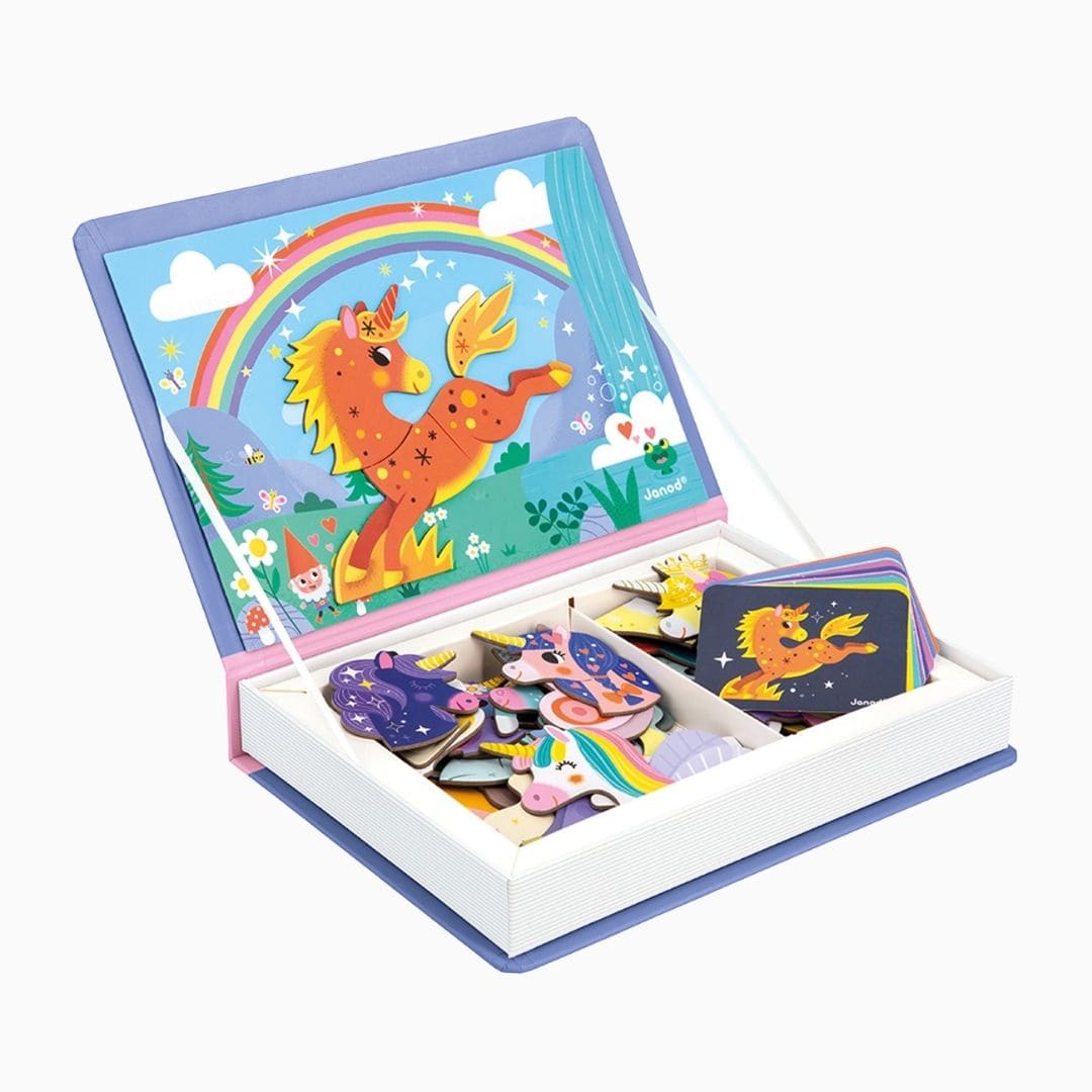 Met het magneetboek ‘eenhoorn’ van Janod maakt je kind keer op keer een nieuwe eenhoorn. Een paarse eenhoorn? Een eenhoorn met vleugels? Alles kan. De voorbeeldkaarten geven inspiratie, maar het wordt pas écht leuk als je je eigen gekke combinaties kan maken.