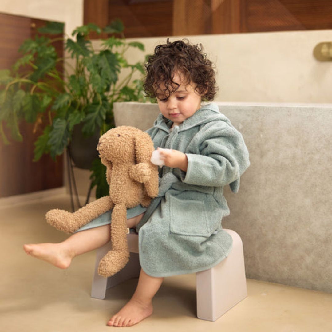 Een badstof badjasje is altijd handig voor jouw dreumes. De badjas is perfect om te gebruiken na het badderen, douchen of zwemmen. De zachte badstof neemt gemakkelijk water op en houdt daarmee jouw kleintje lekker warm. De vrolijke capuchon met oren droogt gemakkelijk de haartjes. Het badjasje is ook handig om mee te nemen op vakantie of mee naar een logeerpartijtje. Het badjasje heeft een handig drukknoopje om hem dicht te houden bij het dragen, elastiek in het rugpand voor de perfecte pasvorm en de ceintuur zit aan het badjasje vast zodat je hem niet kan verliezen.