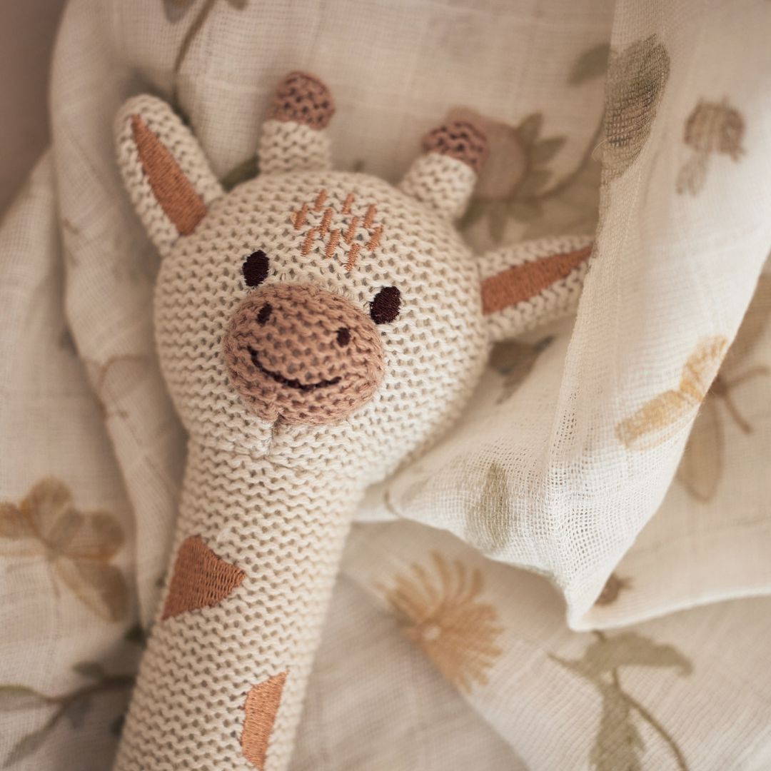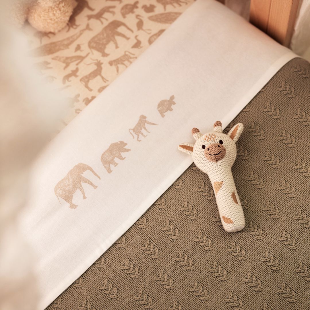Rammel er op los met dit leuke gebreide ramelaartje. Het schattige dierengezichtje heeft meteen een grote aantrekkingskracht op jouw mini! In het rammelaartje zitten subtiele belletjes verwerkt zodat je kleintje er uren speelplezier van heeft. Nu hoef jij alleen nog maar te kiezen tussen de giraffe, vos en beer.