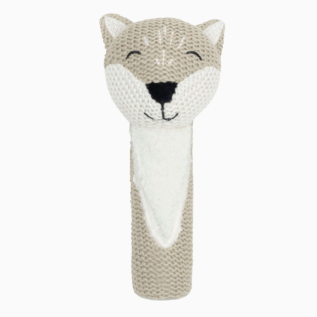 Rammel er op los met dit leuke gebreide ramelaartje. Het schattige dierengezichtje heeft meteen een grote aantrekkingskracht op jouw mini! In het rammelaartje zitten subtiele belletjes verwerkt zodat je kleintje er uren speelplezier van heeft. Nu hoef jij alleen nog maar te kiezen tussen de giraffe, vos en beer.