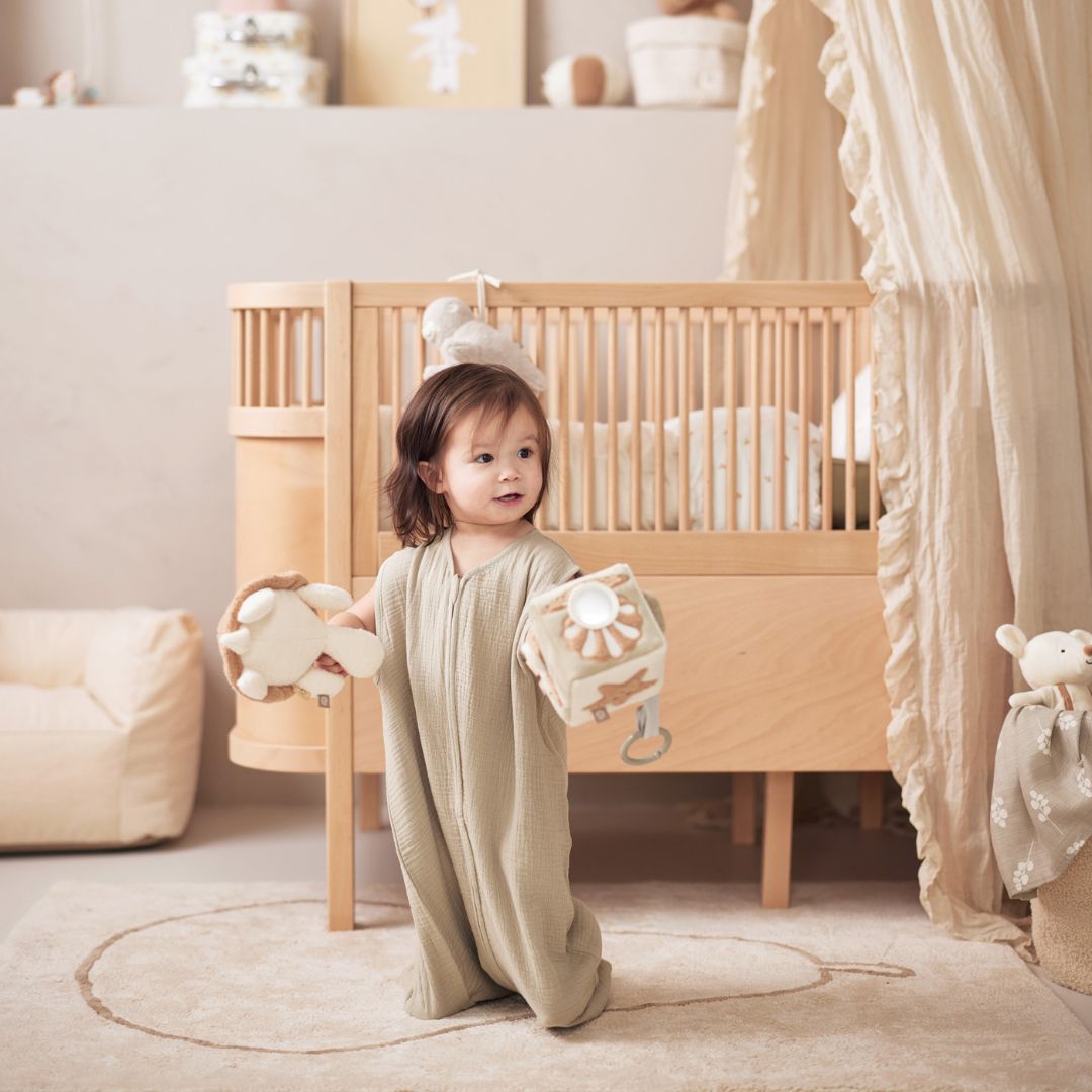 Een slaapzakje is onmisbaar voor je baby of peuter. Het geeft je kind een geborgen gevoel en beperkt de bewegingsvrijheid, waardoor je kind rustiger kan slapen. Deze babyslaapzak heeft geen mouwtjes en een TOG-waarde van 0.5. Perfect voor de zomer.
