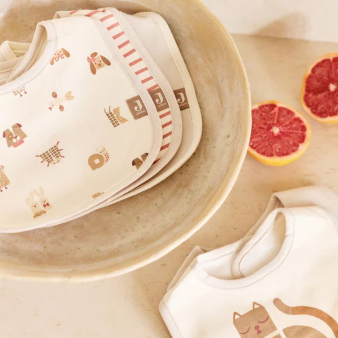 Wauw, bekijk deze mooie 5-pack slabjes in het Animal Friends thema! Met deze slabbetjes blijft de kleding van je kleintje schoon en droog, terwijl de klittenbandsluiting het aan- en uittrekken super makkelijk maakt.
