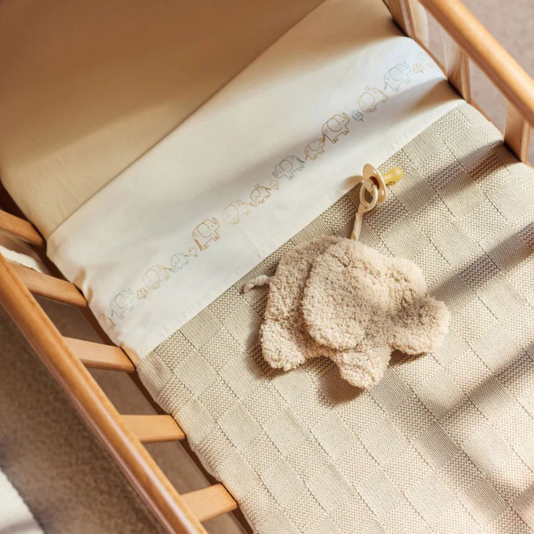 Deze gebreide wiegdeken houd je kind heerlijk warm! Het dekentje is gemaakt van zacht katoen. Je gebruikt het dekentje in het bedje, onderweg of lekker op de bank om te knuffelen met papa of mama. Het dekentje heeft een TOG waarde van 1.0. Gemaakt van GOTS-gecertificeerd materiaal, biedt deze deken niet alleen comfort, maar ook duurzaamheid.