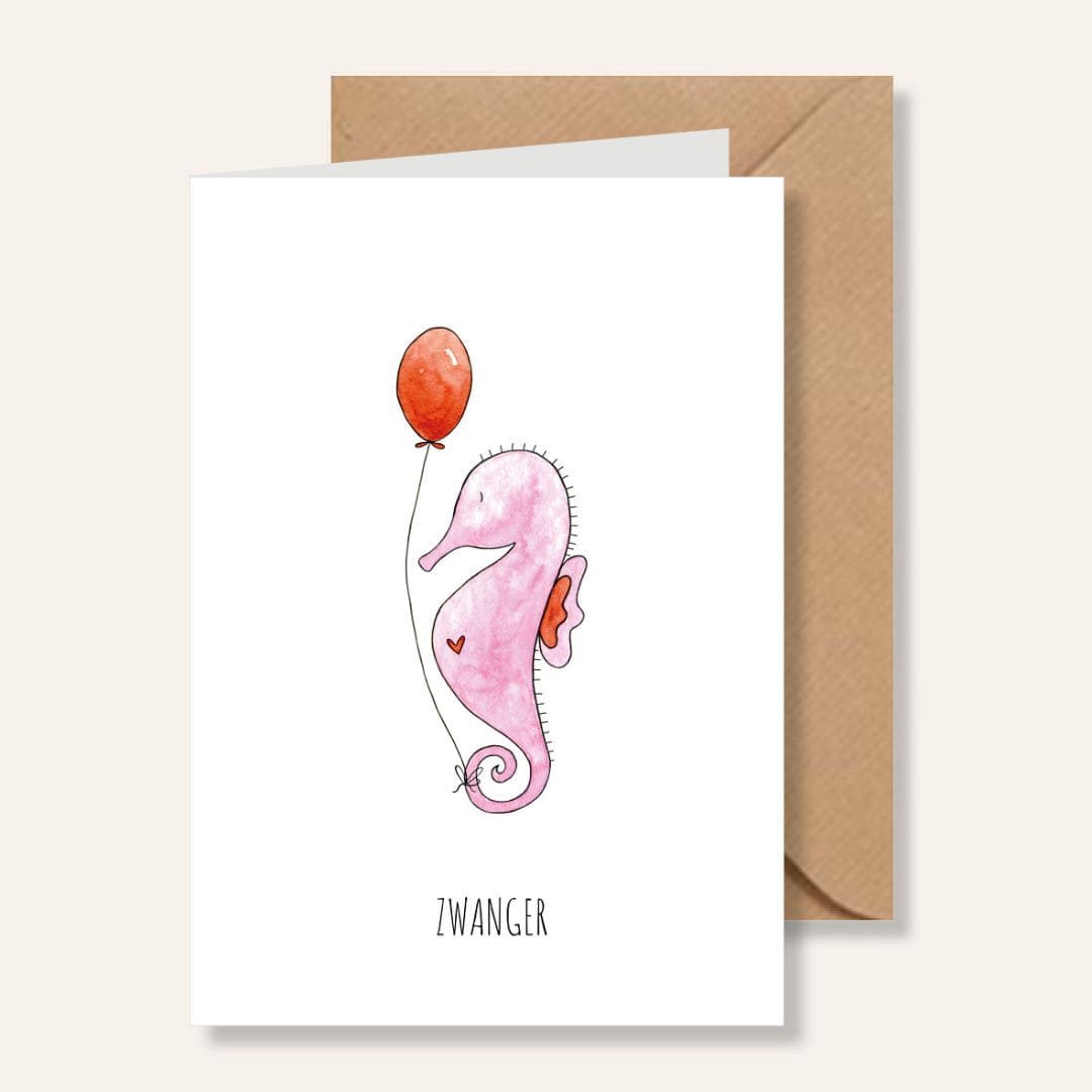 Deze gevouwen kaart is geïllustreerd door Juulz. De zeepaard is met de hand getekend en met aquarel geschilderd. De kaart is 10x15 cm (A6) groot en is inclusief een luxe kraft envelop.