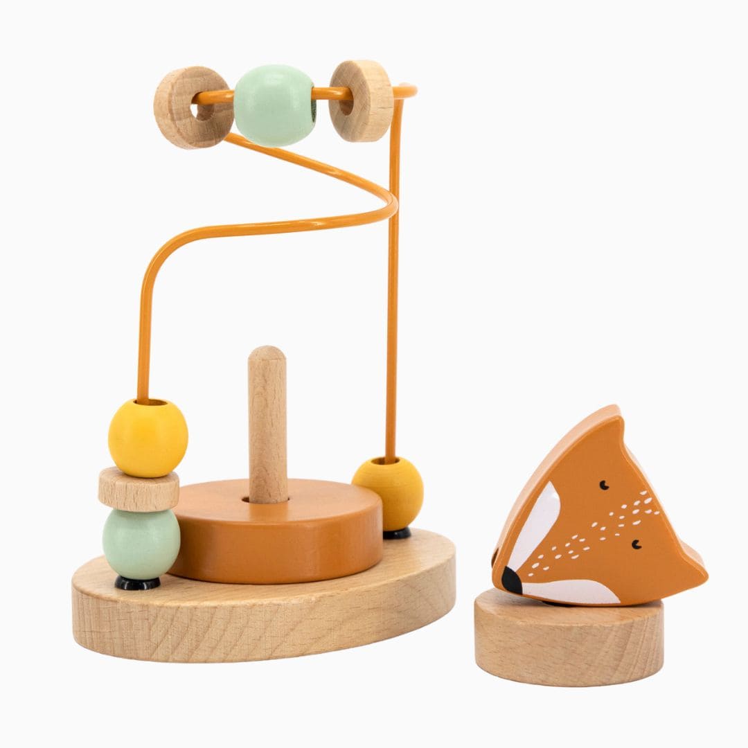 Een klein doolhof met kralen en blokken om de fijne motoriek de kunnen oefenen. Het houten kralenframe Mr. Fox van Trixie is interessant activiteitenspeelgoed waar je kind uren plezier van zal beleven! Het is een goede uitdaging voor je kind om de zeven kralen via de looping van de ene naar de andere kant te laten glijden. Als de kralen naar de andere kant zijn verplaatst, kan je kind de verschillende onderdelen van de ijsbeer in de juiste volgorde stapelen, totdat het dierenvriendje weer compleet is!