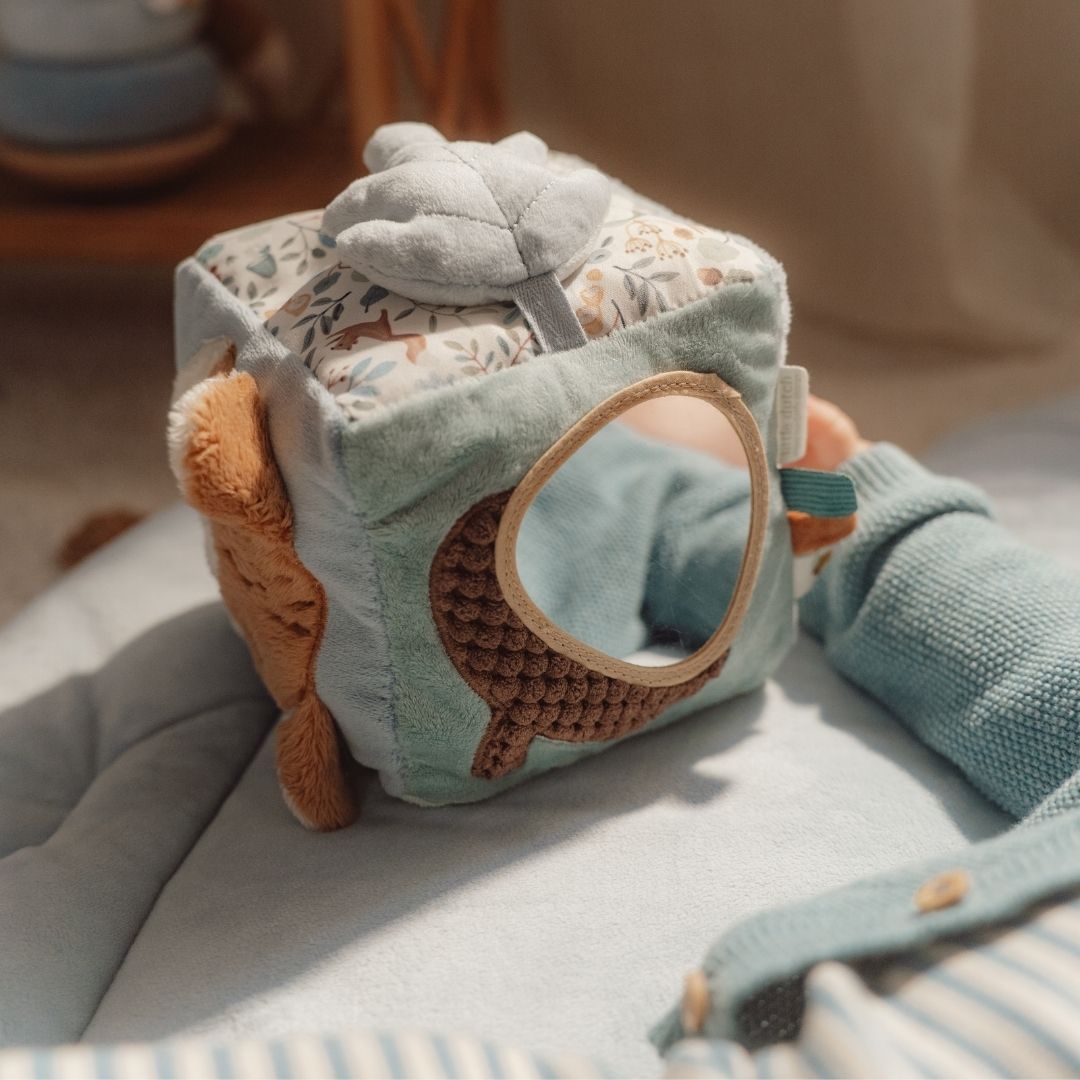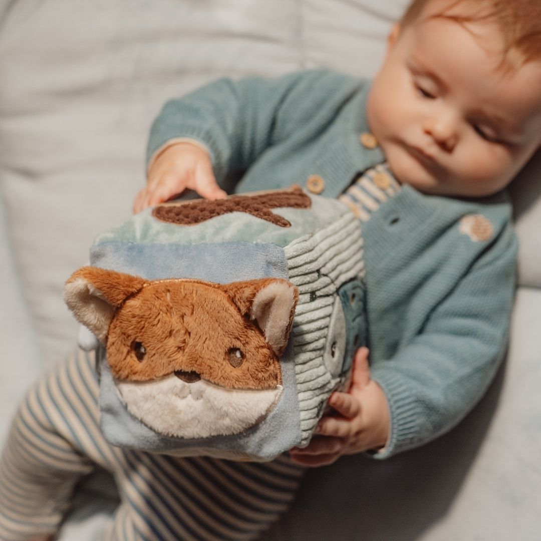 Laat je kleintje de wereld ontdekken met deze superzachte activiteitenkubus Forest Friends. De kubus is perfect om vast te pakken, te grijpen en te draaien, waardoor de fijne motoriek spelenderwijs wordt ontwikkeld. Elke kant biedt iets anders te zien en te voelen en prikkelt zo de nieuwsgierigheid van je baby.