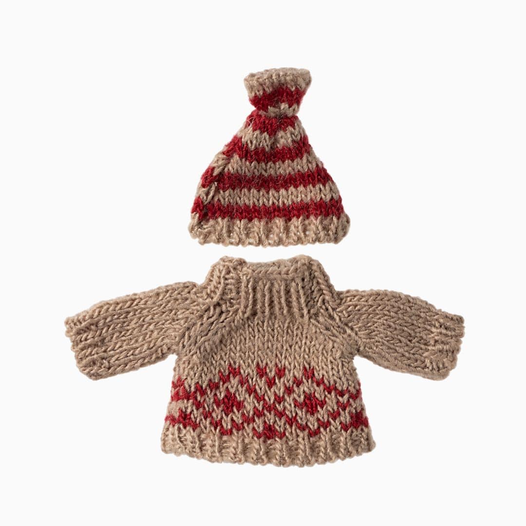 Maileg poppenkleding gebreide trui en muts - mama-muis