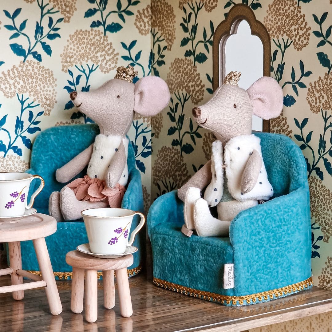 De koninklijke familie wordt nog groter met deze muisjes. Ze dragen gouden kroontjes en prachtige kleren. Ze passen perfect bij de andere koninklijke muisjes.