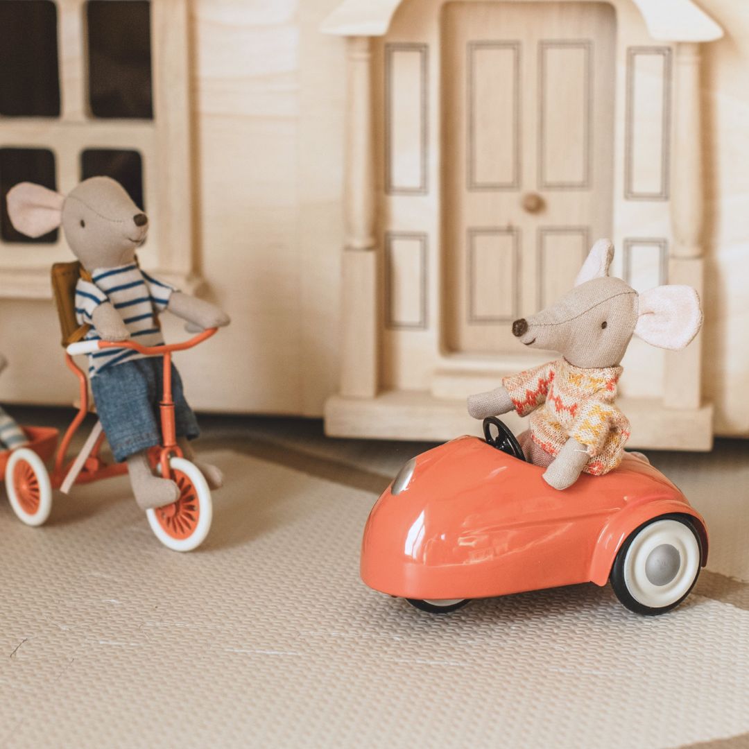 Rijd stijlvol rond met deze vrolijke Maileg muizenauto in de kleur koraal! Deze prachtige oldtimer-inspiratie op vier wielen is perfect voor muizen die houden van avontuur én kleur. Dankzij het stevige metalen ontwerp en de warme, koraalrode tint is dit autootje niet alleen leuk om mee te spelen, maar ook een echte blikvanger in het muizenhuis of op de kinderkamerplank.