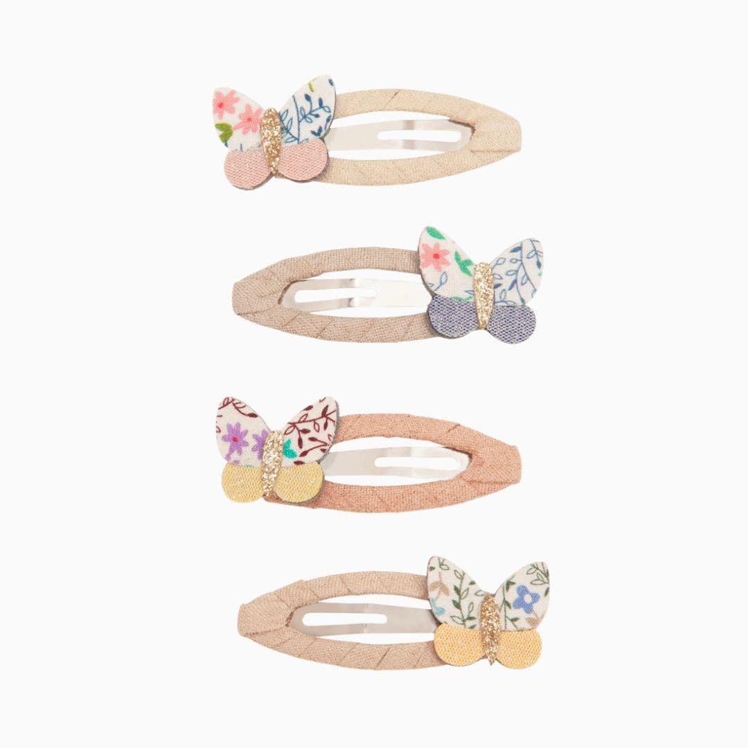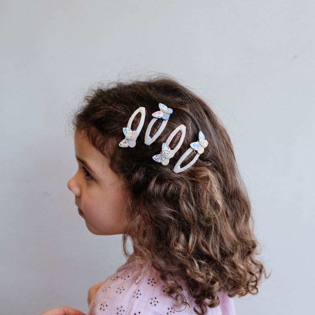 Deze set van Mimi & Lula bestaat uit vier speldjes met kunstlederen vlinders.
