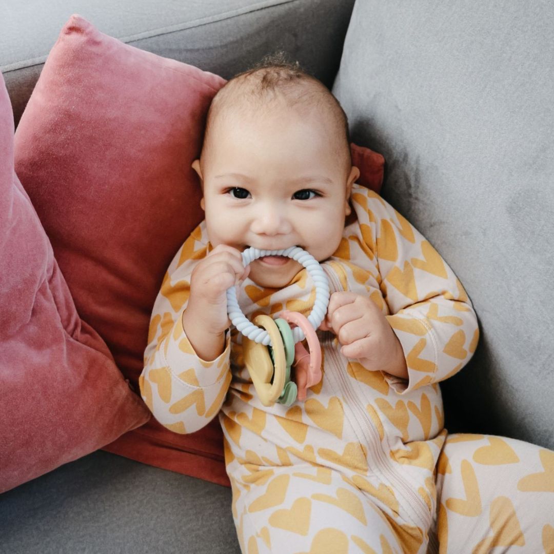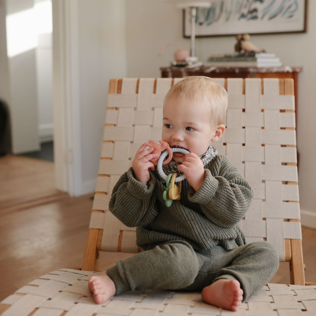 Deze natuur-bijtring van MUSHIE verzacht de pijn bij doorkomende tandjes. Een bijtring helpt bij het ontwikkelen van de fijne motoriek en stimuleert de sensorische vaardigheden van je baby. Dit babyspeelgoed is fijn om op te bijten en sabbelen en kalmeert zo het geïrriteerde tandvlees van je baby. Aan de ring zijn een regenboog, bloem en zon bevestig die allemaal een andere vorm en reliëf hebben. Zo kan je baby zelf kiezen wat hij het fijnst vindt.