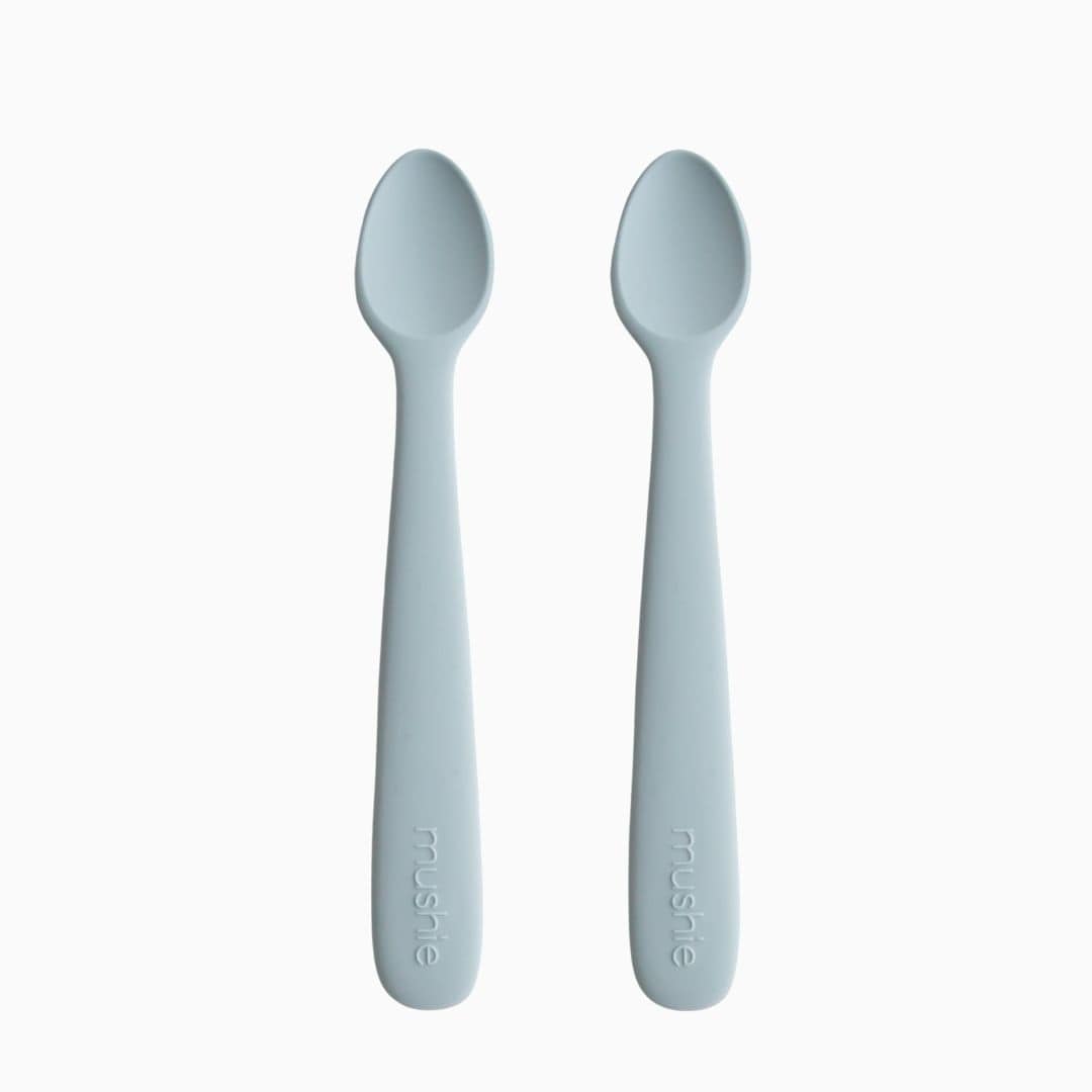 Deze siliconen babylepels van MUSHIE zijn perfect om je baby mee te voeren of zelfstandig te leren eten. Deze set bestaat uit twee siliconen lepels in de kleur wit. Het siliconen is zacht voor babymond. Wel zo fijn als de eerste tandjes doorkomen en het tandvlees extra gevoelig is.