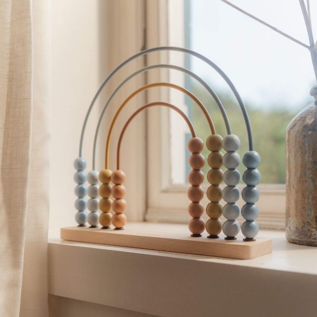 Met dit stoere, blauwe regenboog telraam van Little Dutch wordt tellen pas echt leuk! Het heen en weer schuiven van de kraaltjes vindt jouw kleintje geweldig. Zo leren ze tijdens het spelen meer over kleuren en ontwikkelen ze hun fijne motoriek. En als ze wat ouder zijn kunnen kinderen het telraam gebruiken om te oefenen. Een leuke manier om te spelen en te leren. Bovendien staat het telraam ook fantastisch in de baby- of kinderkamer.