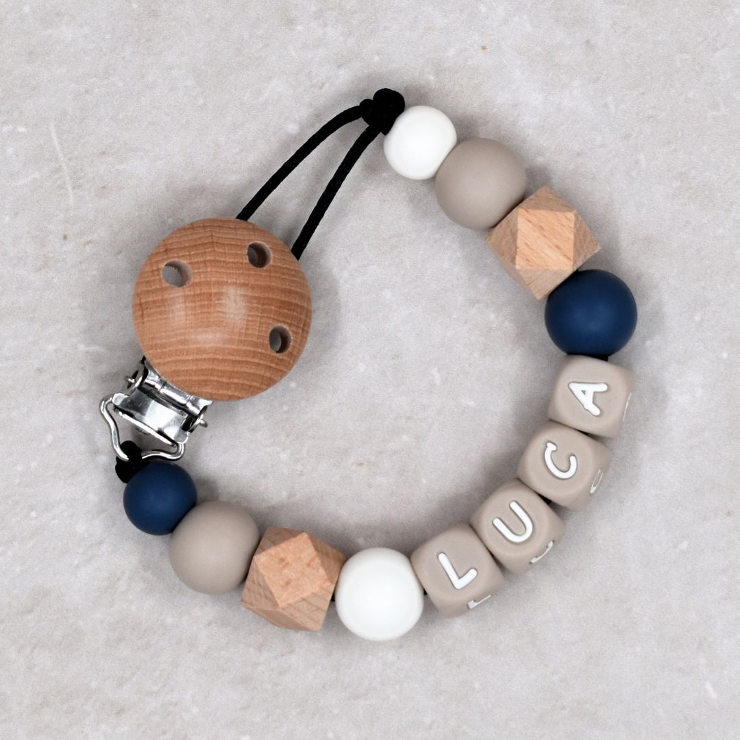 Dit unieke speenkoord is ontworpen én handgemaakt door Iris van Studio Bambacht. Door de trendy navy blauw is dit speenkoord met naam dé finishing touch voor de hippe outfit van je kindje. Super easy vast te maken met clip aan de kleding of kinderwagen. En superhandig, want zo voorkom je dat de fopspeen op de vieze grond valt. Het speenkoord matcht perfect bij de BIBS speen in de kleur sand en white.