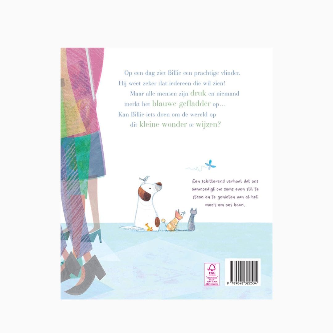 Op een dag ziet Billie een prachtige vlinder. Hij weet zeker dat iedereen die wil zien! Maar alle mensen zijn druk en niemand merkt het blauwe gefladder op… Kan Billie iets doen om de wereld op dit kleine wonder te wijzen? Een schitterend verhaal dat ons aanmoedigt om soms even stil te staan en te genieten van al het moois om ons heen.