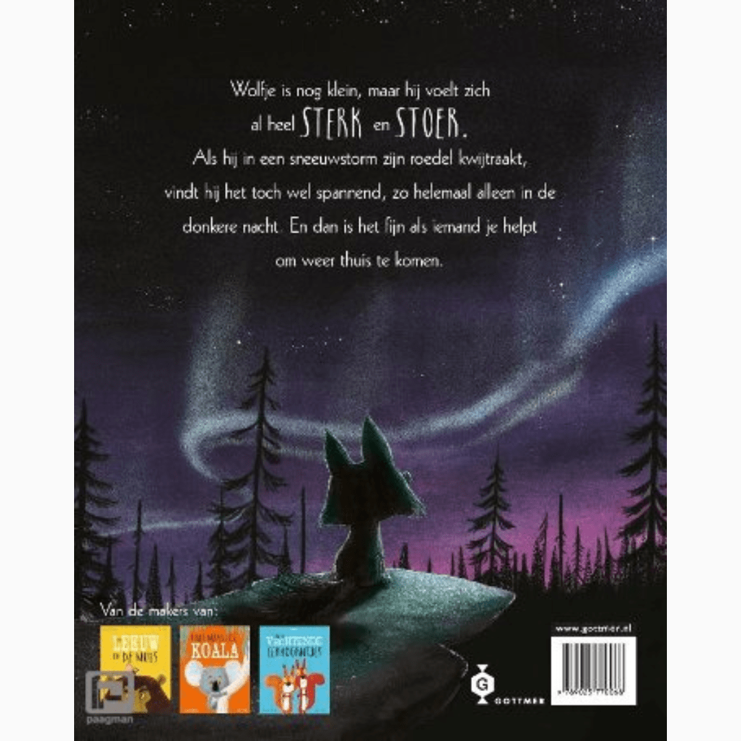 Wolfje vindt zichzelf al heel groot, maar als de roedel wolven op zoek gaat naar een nieuw hol, kan hij de groep niet bijhouden. Wolfje verdwaalt in het ijskoude sneeuwlandschap en is helemaal alleen. Tot hij uit onverwachte hoek hulp krijg van onbekende... Zal hij thuis komen?
